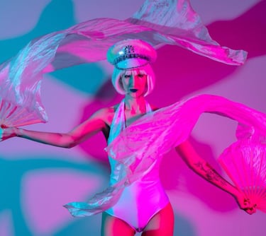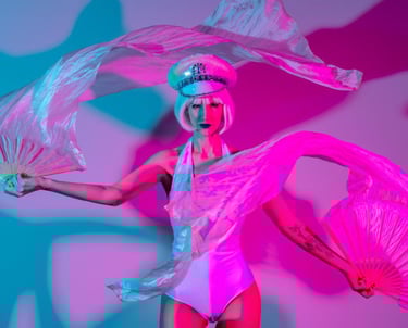 Liz started out her performing career as a go-go flow and fire dancer in Thunder Bay, ON. She quickly became a vixen of the flow arts performing at local festivals, the community auditorium and various events around the city. During covid she started touring through Superb. Learning a whole new art; pole. Liz is passionate about fire safety and teaching the flow arts and sex work advocating. After having her daughter shes excited for the new behind the scenes chapter, although we miss her on stage.